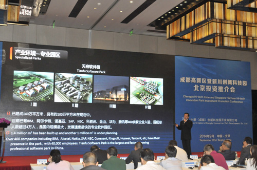 【香港商报讯】记者郭代勤报道:17日,成都高新区与新川创新科技园共同在北京举办投资推介会。推介会吸引了70余家国际国内知名企业关注,中国航天科工集团、中国电子信息产业集团、中国电力投资集团等十余家央企,微软、亚马逊、道达尔、费森尤斯卡比等8家世界500强企业参加推介会。