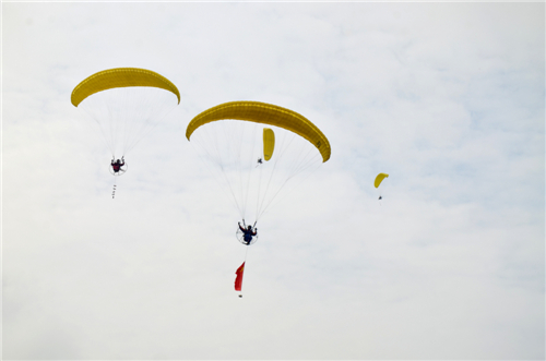 据悉,本届邀请赛的主题是"壮美大瀑布o空中嘉年华",除传统的跳伞邀请赛以外,还增设了热气球、三角翼飞行、动力伞编队穿越大桥飞行、三角翼跳伞等航空飞行表演项目,其中,动力伞编队穿越大桥飞行表演项目为中国国内首次。