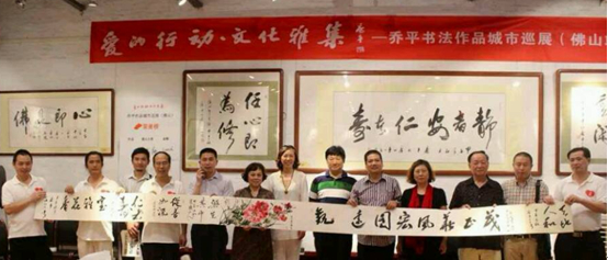 [香港商报讯]报道:爱的行动•文化雅集——启德文化基金文化巡展系列活动•乔平书法作品城市巡展第四站于9月22日在佛山陶都工艺美术馆拉开帷幕。27日下午画展作者乔平亲临陶都工艺美术馆,以笔会友,和佛山书画界、收藏界人士还有广大艺术爱好者交流书法艺术,并义卖共绘作品为启德文化基金筹款。