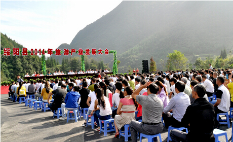 [香港商报讯] 实习记者王浪 报道:9月29日,贵州省遵义市绥阳县2014年旅游产业发展大会在双门峡景区拉开帷幕。大会以“诗画绥阳·养生天堂”为旅游发展定位,着力打造“中国旅游城市”,旨在进一步落实省、市旅游工作会议精神,全面推进绥阳县旅游产业跨越发展。