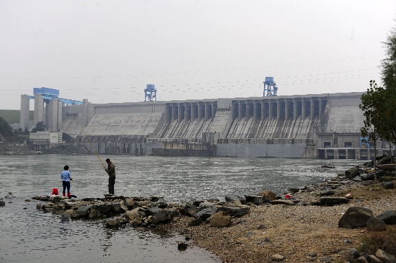 10月16日,钓鱼爱好者在丹江口大坝下游钓鱼