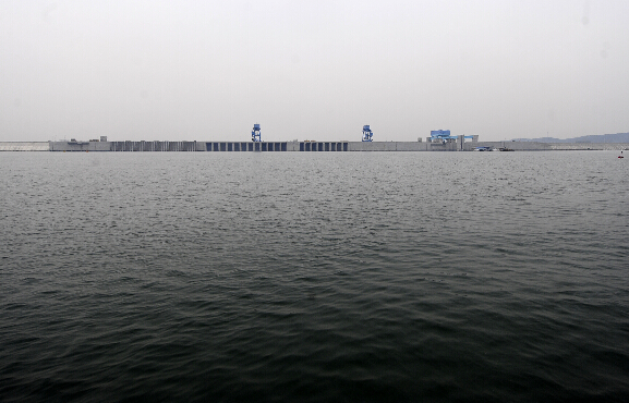 这是蓄水中的丹江口大坝与水库库面