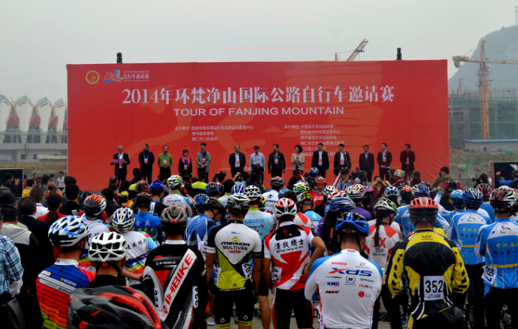 开幕式上,铜仁市委副书记李建在致辞中说,今年环梵自行车赛报名参赛的选手有600多人,又创了环梵自行车赛规模的新高,希望各参赛选手在参加比赛和欣赏梵净山风光的同时,品尝好由梵净山空气罐头、梵净山神水、月上寨沙和云中仙舍的表演以及江口萝卜猪这四道菜组成的梵净山大餐。