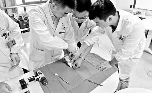 刘国辉决定,借助国际上先进的3D打印技术来做此复杂的骨折手术。在征得小军同意后,刘国辉将小军受伤右胫腓骨的CT扫描数据传输到3D打印设备,按照1:1的比例打印出完全相同的模型。刘国辉拿到了3D打印模型,便和同事们在实验室里进行预手术,即对模型进行术前模拟手术操作。在随后进行的实际手术中,刘国辉和其团队驾轻就熟,只花费了45分钟就顺利完成了手术,而往常此类手术需要90分钟,相比而言,减少了近一半时间。
