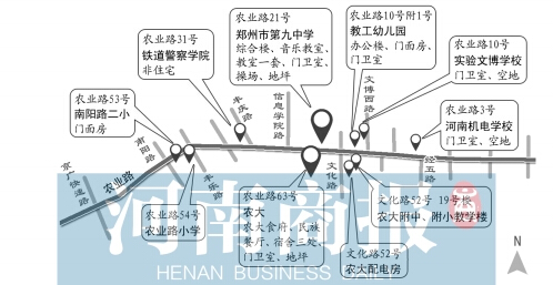 郑州市金水区政府近日张贴的《农业路快速通道工程金水区项目国有土地上非住宅房屋征收决定的公告》显示,此次拆迁涉及单位众多,包括公共单位56个,省直单位12个。其中,一些学校的部分校舍也在拆迁范围内,河南商报记者统计发现,共有农业路小学、农大附中、铁道警察学院等10所学校。