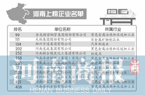 與8月份全國工商聯發布的榜單相比 豫企減少了兩家