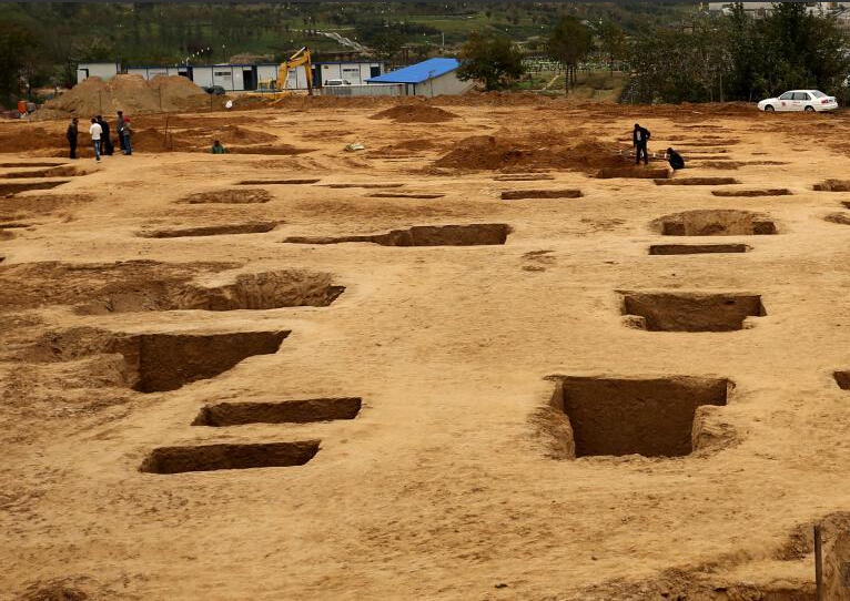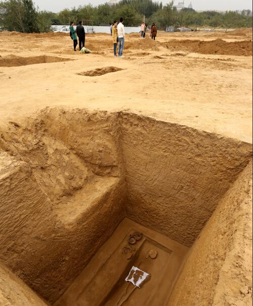 10月27日,河南新鄭,發掘清理后的墓葬坑
