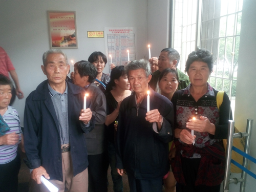 娄底市新石村村民点燃烛光,“期待光明到来”