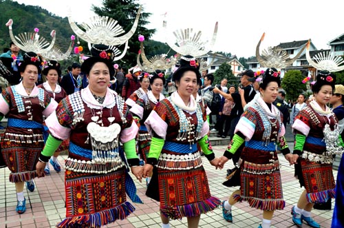[香港商报讯] 记者 黄庆松 实习记者 王浪 报道:11月3日,2014中国•雷山苗年苗族非物质文化遗产展演,在雷山县木鼓广场内拉开序幕,来自该县的10个代表队和国内12个苗族代表队身着绚丽的民族服饰、载歌载舞,尽情展示自己的民族文化。