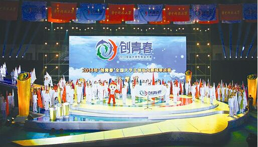 11月1日,由共青團中央、教育部、人力資源和社會保障部、中國科協、全國學聯、省人民政府主辦,華中科技大學、共青團湖北省委、武漢東湖新技術開發區承辦的“創青春”全國大學生創業大賽在華中科技大學開幕。