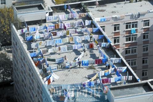 昨天的鄭州陽光明媚,人們在樓頂曬起了被子