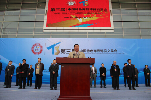 第三屆特色商品博覽交易會由中國商業聯合會、中國商業企業管理協會、晉陜豫黃河金三角承接產業轉移示范區、河南省發改委、省商務廳、省工信廳主辦,三門峽市、運城市、臨汾市、渭南市人民政府共同承辦。開幕式由東道主三門峽市長趙海燕主持,河南省副省長張維寧、中國商業企業管理協會會長何濟海、三門峽市委書記楊樹平分別在開幕式上致辭。