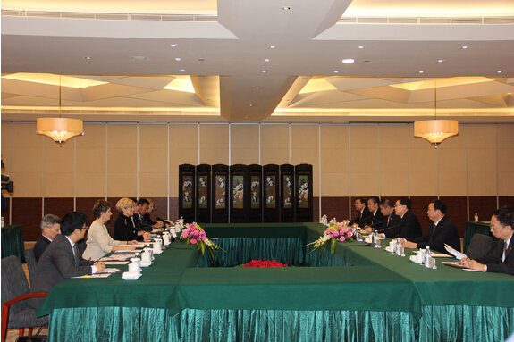四川省委書記王東明(右中)會見澳大利亞外交部長畢曉普(左中)