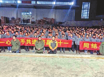 “雙11”前夕,河南一家快遞公司召開動員大會。