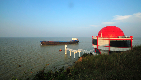 鏡頭聚焦:鄱陽湖“肚臍眼”位置的蛇山島上,矗立著一個紅色穹頂小樓。小樓裡齊全先進的設備正在對鄱陽湖水量、水質、湖流、藻類、風速、氣壓、地溫、水汽通量等要素進行自動、即時的監測。