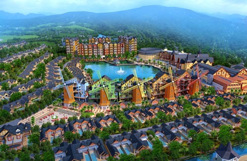 项目融合东西方庄园文化,建设项目包括:第一座客家围屋式五星级酒店和酒店内一台观众席可360°旋转的全景剧场秀;第一座塑有释迦牟尼金身端坐金菩提树下成佛的客家围屋式寺庙;全国最具挑战难度的体育公园之一;全国首创国医国药温泉;华南第一个人造四季滑雪场的等。