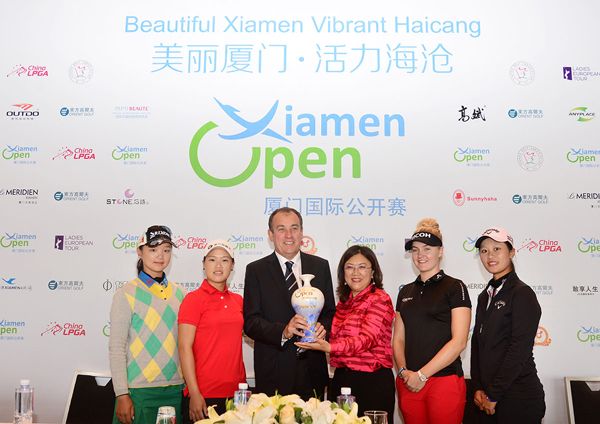 石昱婷、程思嘉、女子欧巡赛事总监史蒂夫-凯文纳先生、女子中巡执行董事李红、查理-赫尔、林希妤