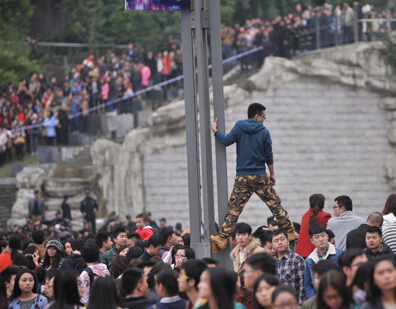 11月20日,重慶上萬粉絲在南濱路等待《奔跑吧兄弟》節目的錄制。記者在現場看到,粉絲們為了有與自己喜歡的明星合影機會,每當有過往的車輛都會被他們包圍檢查是否車內有自己喜歡的明星。據執勤民警介紹,因聚集市民眾多,導致整個南濱路交通水泄不通,為了市民的人生安全起見,最後臨時取消了該室外節目的錄制。陳超 攝