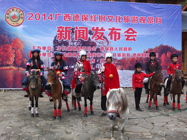 記者從廣西百色市德保縣瞭解到,2014年德保紅楓文化旅遊觀賞月活動將於12月1日至31日舉行。屆時,德保矮馬騎行體驗游、曼貝儂小西湖油葵花海觀光游、巴頭多勾楓情遊、名特優產品展銷會、第五屆美食節、“紅葉情”攝影(像)大賽、本土元素文藝晚會等一系列特色活動將輪番上演。