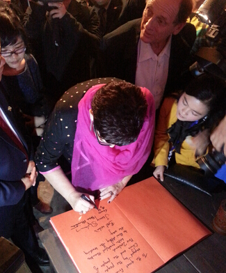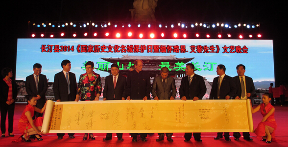 希普利與中共龍巖市委書記梁建勇在《夢記汀州》長卷上簽字