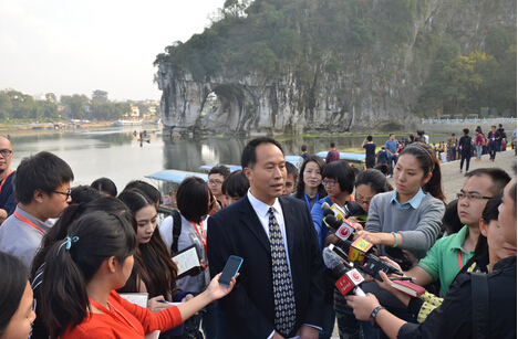 桂林市旅游局新聞發言人彭康生接受記者采訪