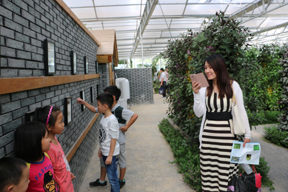 游人在航天温室大棚内兴奋留影