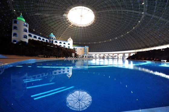 圖為亞洲最大的穹頂式室內溫泉養生基地一角。