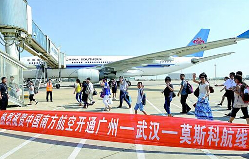 今年7月30日,南航開通廣州—武漢—莫斯科國際航線,這是我國中部地區首條直飛俄羅斯航線。在武漢的首航儀式上,外交部副部長程國平表示,武漢至莫斯科直飛航線是國家“絲綢之路經濟帶”戰略的重要載體,借由這座新“空中走廊”,中國長江中上游地區與俄羅斯伏爾加河沿岸地區將建立更為緊密的聯系。