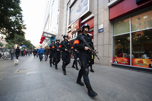 长沙市公安局特巡警支队特警一大队民警在黄兴南路步行街武装巡逻