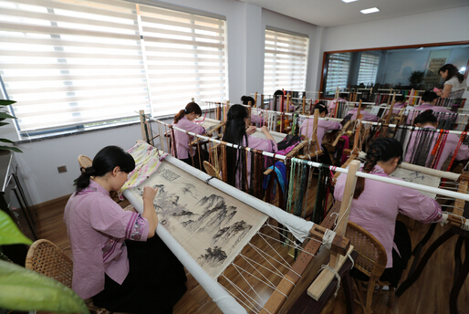 夏布繡傳承人張小紅正在傳授夏繡技藝,讓古老的工藝”活”起來