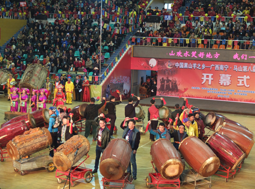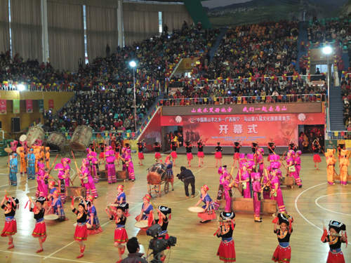 在美食节开幕式上,极具地方特色的马山壮族三声部民歌、马山打榔、壮族打扁担、壮族会鼓等地方原生态节目轮番上演,彰显马山民俗文化内涵。首次举办的八桂名鼓荟萃大展演是本届节会的一大亮点,除了邀请本土会鼓代表队参加展演以外,还特邀东兰壮族铜鼓队、都安瑶族铜鼓队、南丹白裤瑶铜鼓队、灵山烟墩大鼓队等6支鼓队参加此次展演活动。27日上午,所有鼓队齐聚马山县会鼓广场,为参加活动的群众和游客带来了一场精彩的会鼓表演。
