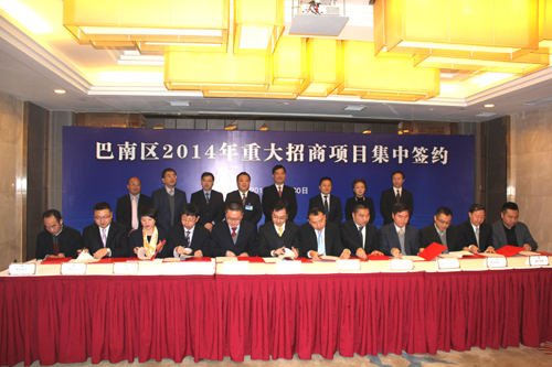 此次集中签约,这仅仅是巴南扩大开放、吸引全球资本,加快开放经济体系建设的一个缩影。按照“千亿级”工业体系目标,以龙头带集群的产业框架正加快形成。汽车制造业方面,长安铃木、世界500强宝钢集团等项目陆续建成投产。数码电子方面,惠科电子、台湾圣美及香港东荣发电子、会凌电子等项目陆续动工建设。在医药及精细化工方面,西部最大原料药生产基地西南合成医药产业园、悦康药业等项目开工建设。此外,华南城、京东商城、世界500强普洛斯也在巴南续建成运营。2014年,巴南共引进项目112个,协议资金668亿元,实际到位资金324亿元,合同外资50931万美元。
