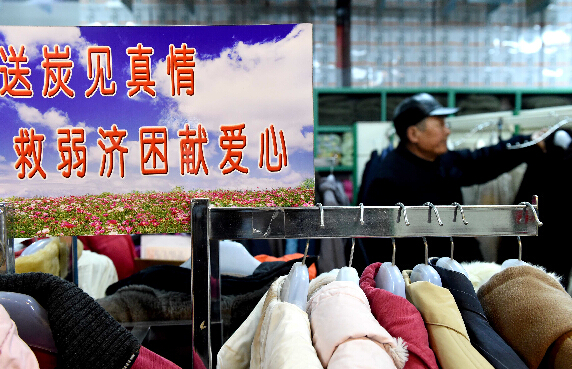 1月7日,一位顧客在平頂山愛心救助超市內挑選冬衣。