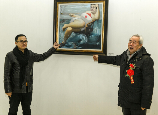 【香港商报網讯】记者刘洗涌报道:1月30日,湖南长沙市举行“重启文艺复兴——刘浩锋当代艺术作品拍卖会”,油画《复活》获得初拍40万元。该作图像是日本首相安倍晋三,但身体却是一个臃肿贪婪的女人,坐在风波卷起的大海上抽着大烟,图面背景则是中华人民共和国的宝岛——钓鱼岛。