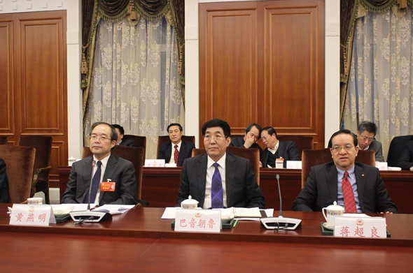 吉林省委書記巴音朝魯(中)、省長蔣超良(右)、省政席主席黃燕明(左)出席吉林省政協十一屆三次會議港澳委員座談會