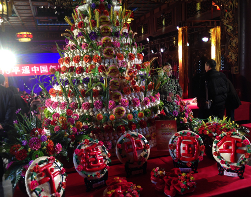 活动启动当天,百名书法家齐聚平遥古城兴国寺旧址,挥笔弄墨,写下一幅幅春的祝福。而在古城的大戏堂内2015平遥中国年活动主打内容之一——“蒸年馍”展演赛正如火如荼的进行。通过由秦晋两省共同推出各具特色的年馍作品展示,并派民间艺人现场进行制作表演,冀让广大游客感受到传统中国年的文化魅力和面食文化的民俗风情。同时借助此次大赛的成功举办,引导传统民间面食艺术品产业化。