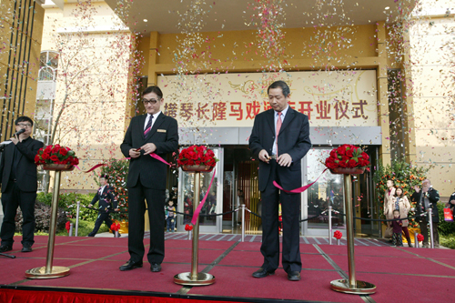 长隆集团珠海区总经理陈捷(右)和长隆马戏酒店总经理邓振杰(左)共同为马戏酒店剪彩