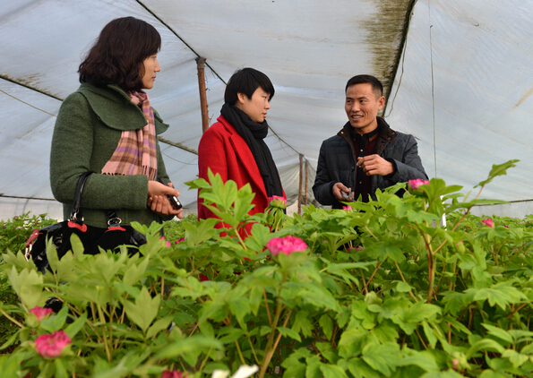 在合肥市廬陽區大楊鎮國家林業科技示范園一家花卉公司大棚內,市民在挑選牡丹花。