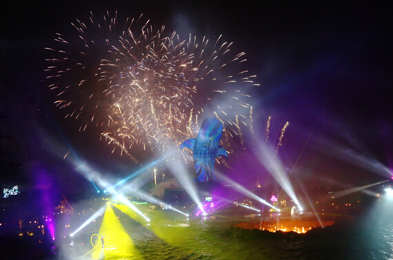 值得一提的是,與“聲、光、電”共同亮相的橫琴海洋王國中心湖表演團隊“H2O EVENTS”,2014年11月中旬剛剛從2014澳洲活動大獎會( Australian Event Awards )捧得“最佳國際演出成就獎”,此次升級的,還有他們的特技表演。在已經被煙花照亮的夜空下,表演團隊推出了耀眼的升級版摩托艇、水上芭蕾和飛人(Sky board)表演,難度大增。以往,摩托艇的演出相對簡單,如今,表演團隊推出了更好看的摩托艇煙花,加上摩托艇特技及與觀眾的互動,人艇合一的感受讓人過目不忘.
