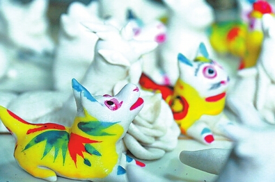 花饃屬于民間面塑技藝,色彩鮮艷,寓意美滿。陳志剛的這批花饃造型各異,僅僅是猴子的造型就有十來種,有的手搭涼棚極目觀望,有的懷抱仙桃喜不自勝,個個妙趣橫生。