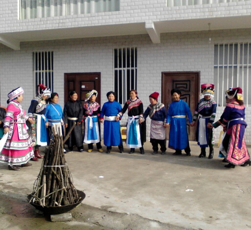 上午10點左右,當記者一行來到大河鎮漁塘社區居民王學英家時,王學英的家收拾得幹幹淨淨,寬敞明亮的客廳裏不時傳來歡聲笑語。王學英帶著家人和姐妹,伴著音樂節奏,圍著家門口未點燃的篝火唱起了彝族情歌、酒歌、敘事歌,跳起了簡單的達體舞。雖然平均年齡已達40多歲,但她們身上展現出新時代老年人開心快樂的精氣神兒,讓她們宛如二十幾歲的姑娘,在舞蹈中煥發著青春和喜悅。