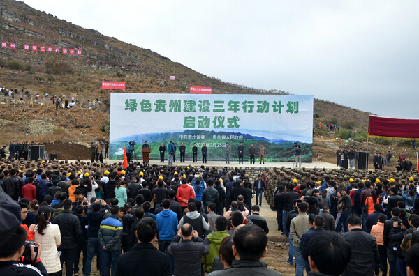啟動儀式上,陳敏爾省長說,省委、省政府決定在過去良好工作的基礎上,啟動實施綠色貴州建設三年行動計劃,以新一輪退耕還林和縣鄉村造林綠化為抓手,力爭用三年時間,全面綠化宜林荒山荒地,讓貴州大地綠起來、生態環境美起來、山地經濟強起來。