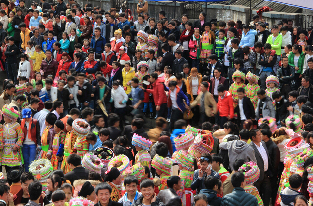 花山節又稱“踩花山”,是苗族民間一個盛大的傳統節日,主要流行于滇東北、滇南的苗族村寨,每年的正月上旬舉行。“踩花山”最初是為了祭祀苗族的祖先蚩尤,后來的活動內容又花山祭桿儀式、爬花桿、蘆笙歌舞、斗牛、武術表演等。節日期間,盛裝的苗族男女圍成一大圈載歌載舞,慶祝吉祥幸福。