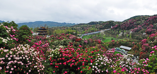 百里杜鵑不僅是世界上面積最大、品種最多的原始杜鵑林帶,而且是山水林花奇妙組合,賞花避暑皆備的“季節幻燈片”。總面積125.8平方公里的原始杜鵑林,包括馬櫻、團花、露珠、迷人等60多個品種。每年3到4月,姹紫嫣紅的杜鵑花競相綻放在綠色枝頭,組成鋪山蓋嶺、氣勢恢弘的絢爛花海。在這片“地球彩帶,杜鵑王國”中,奇山異水、靈山秀水與原始杜鵑林相伴,良好的森林覆蓋率不僅帶來綠葉護百花、山花齊爛漫、杜鵑更嬌豔的大美風景,而且成為一座天然大氧吧,讓遊客在養眼、養肺、養神、養生和醉心中,更加感受“花中此物是西施,芙蓉芍藥皆嫫母”、“曾經滄海難為水,除卻杜鵑不是花”的人間至美。
