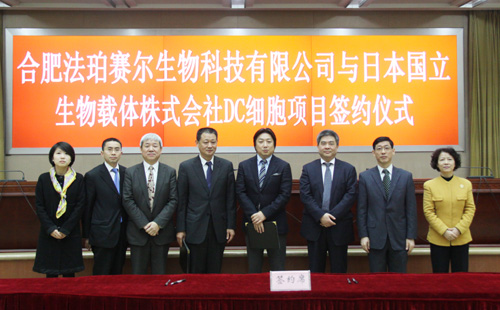 目前,中国恶性肿瘤总体治愈率是30.9%,而欧美发达国家则达到了60%-70%,日本更进一步领先于欧美。为了完善安德生制药公司和法珀赛尔生物科技有限公司的产品线,提高肿瘤防治水平,该两家公司率先与日本DNAVEC公司,日本先端医院等日本最顶级的癌症早期筛查及治疗机构展开全面合作,引入其最先进的癌症诊断技术,及肿瘤免疫治疗技术。通过两年多的洽谈,双方已达成一致,以法珀赛尔生物科技有限公司引进DC细胞的扩增技术作为整个合作的开始,同时聘请四位日本籍专职医生落户合肥帮助完成该技术在合肥的落地,并为全面医疗体系的引进打好基础。