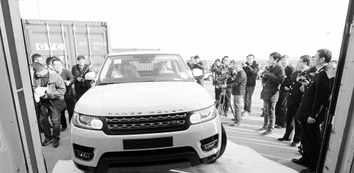 路虎搭乘鄭歐班列抵達鄭州(資料圖片) 河南商報記者 鄧萬里/攝