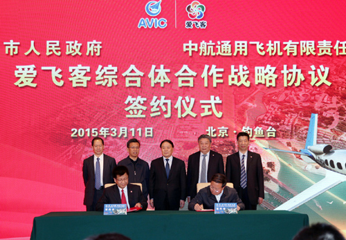 中国民用航空局局长李家祥在签订仪式上表示,民航业是国民经济的重要基础产业,是综合交通运输体系的重要组成部分。运输航空和通用航空是一个国家民用航空事业的“两翼”,两翼齐飞才能共建民航强国。通用航空对国家经济社会发展的贡献,不仅体现在通用航空产业链本身,而且是民航业发展的基础和航空运输体系的重要组成部分,更在国家经济建设、社会发展、公共服务等方面发挥着不可替代的作用。中航工业全面启动了爱飞客航空综合体的规划设计和选点布局工作,对于打造综合性的通用航空发展平台,发展航空创意经济,促进区域经济转型升级,加快中国航空产业发展起到了积极作用。