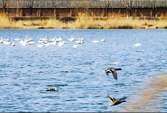 据该学院后勤维护人员介绍,天鹅每年3月份迁徙都会路过学院芦花湖并在此休憩,今年的时间比去年晚了一周。记者在现场看到,这两天太原天气转暖,芦花湖的湖面上,天鹅们有的三三两两在水面上嬉戏,有的悠闲地游着,还有的在水面上晒着太阳。在更远处的一片湖水里,数不清的野鸭、灰鹤在湖面上栖息,给春季的校园增添了别样的气息。
