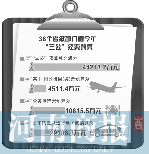 截至目前,河南省共有38個省級部門公布了今年“三公”經費預算。