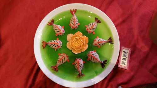 滿漢全席是我國一種集合滿族和漢族飲食特色的巨型筵席,起源於清朝的宮廷,原為康熙66歲大壽的宴席,旨在化解滿漢不和,後世沿襲此傳統,加入珍饈,極為奢華。由嘉華大酒店中餐部制作的大型饕餮盛宴“滿漢全席”今晚亮相嘉華殿堂,其中以山珍海味為主,全套宴席有冷葷熱肴六十品,點心茶品二十品,大大小小的碗和盤整整擺滿了直徑6米寬的餐台,顯得格外搶眼。滿漢全席的頭菜之一即禦前一品湯“佛跳牆”,此菜以雞、鴨、羊肉、豬肚、鴿蛋及海產品等10多種主料以及十二種輔料煨制而成,寓意著“吉祥如意、福壽雙全”。